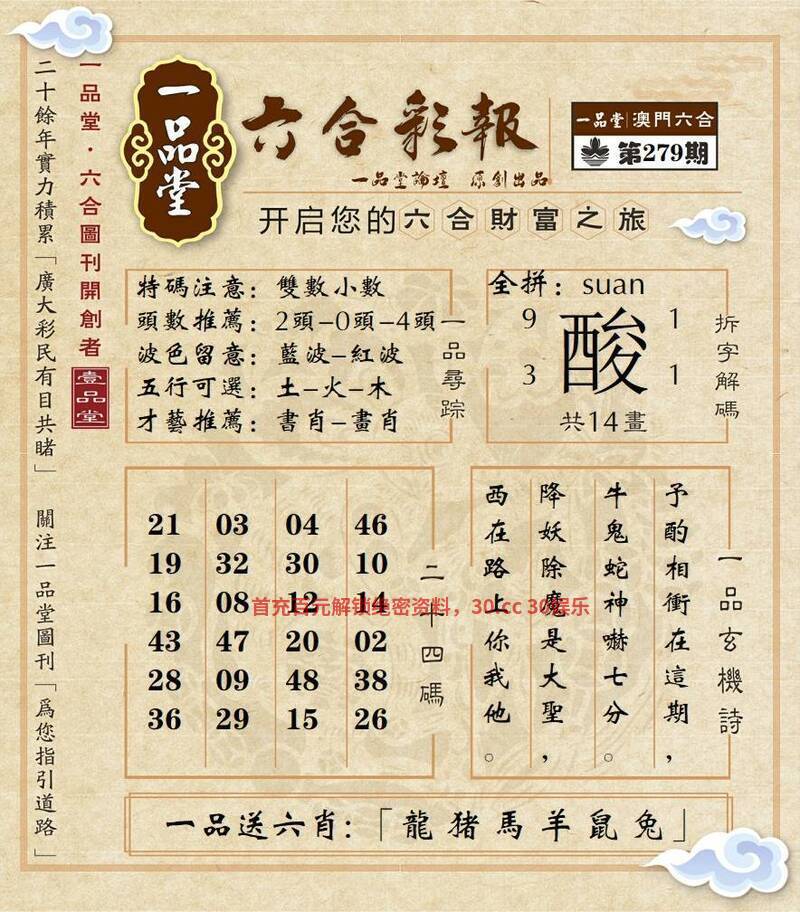281期:澳彩网站→【天地中特】牛逼料
